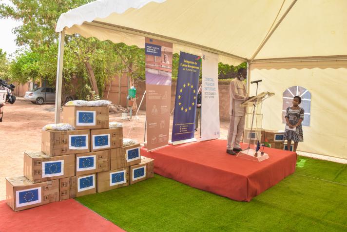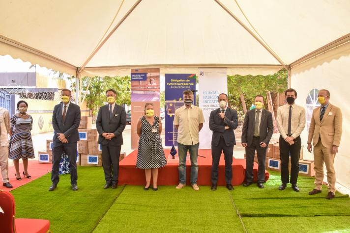 Le 6 mai 2020 s’est déroulée à Ouagadougou, capitale du Burkina Faso, la cérémonie de remise de 15.000 masques de protection à destination des populations vulnérables au sein du siège du Groupement d’Intérêt Economique Commerce et Artisanat pour le Bien-Etre Social (GIE CABES). Ce geste de solidarité, initié dans le cadre du projet "Initiative de Mode Ethique" mis en oeuvre par l'Union européenne, l'International Trade Centre (ITC) et du GIE CABES vise la prévention et la riposte d’urgence à l’épidémie du Covid-19.