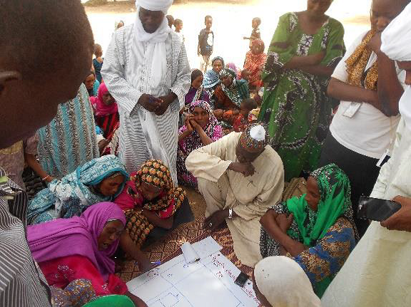 C’est dans ce cadre que le projet "Emploi, résilience et cohésion sociale dans la bande sahélienne et la zone du Lac Tchad " a organisé seize (16) ateliers de Planification Participative des Scénarii (PSP) dans les trois régions du projet. Ces ateliers sont organisés avec les communautés, les autorités locales et les services de la Météo afin de faciliter l’accès aux informations climatiques (prévisions saisonnières) aux communautés les plus vulnérables.